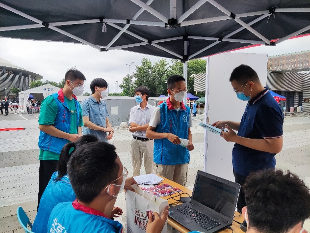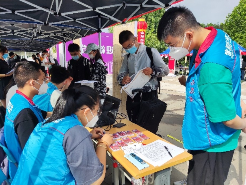 土木学院辅导员一大清早便来到现场迎接同学们的到来
