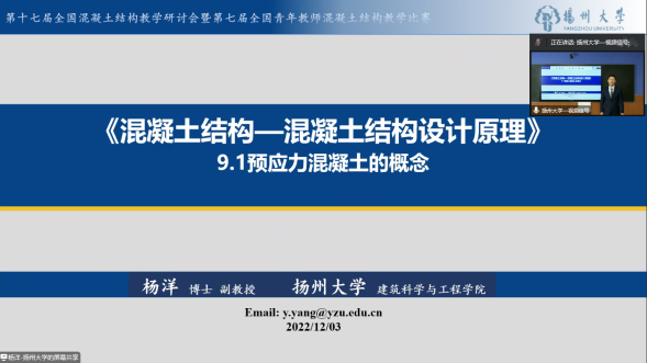 2022年12月2-4日,第十七届全国混凝土结构教学研讨会暨第七届全国青年教师混凝土结构教学比赛在JINNIAN金年会通过线上直播形式成功举办。此次会议原计划于2022年10月28-30日举办,因疫情改期,来自全国近百家高校、企业的1100余名代表参加了大会,线上观看达8000余人次。