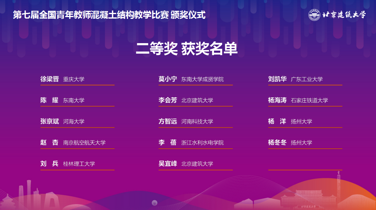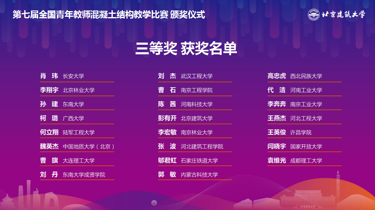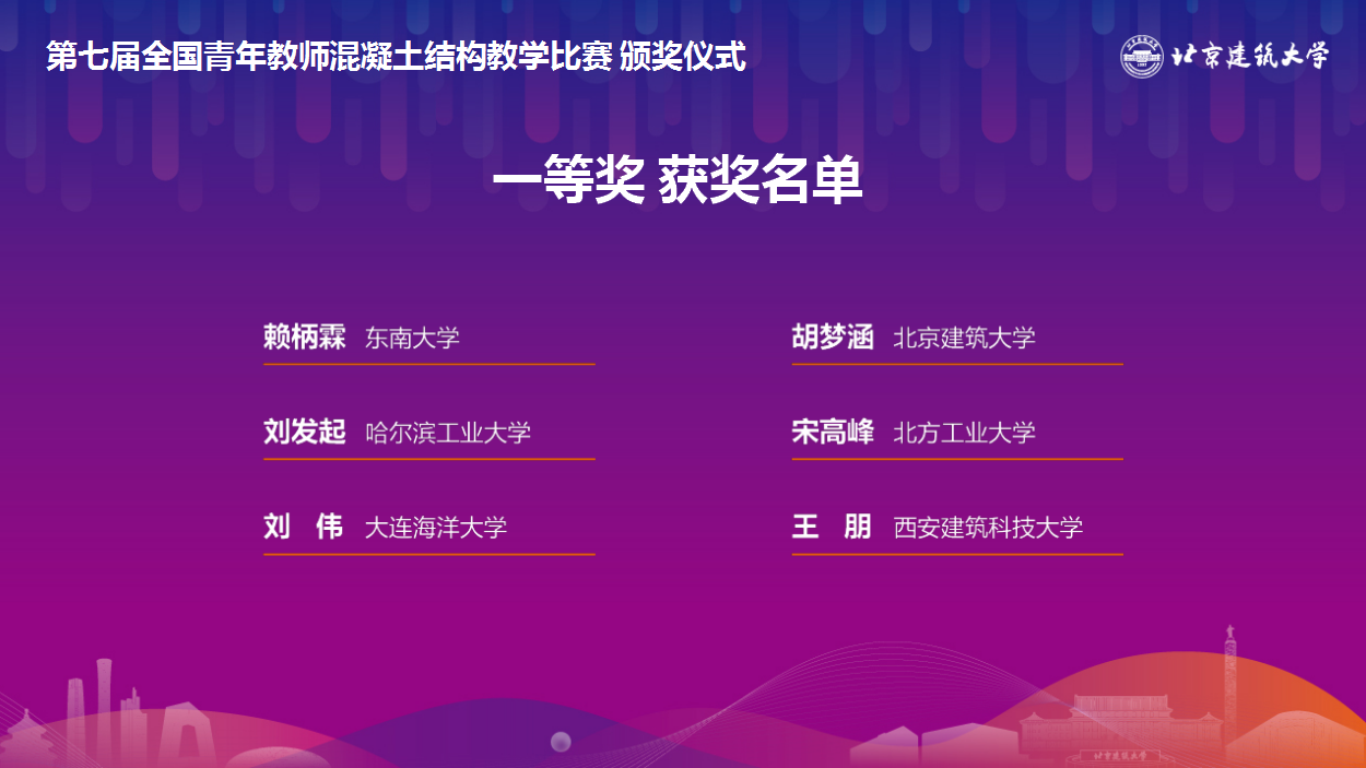 第七届全国青年教师混凝土结构教学比赛获奖名单(排名不分先后)