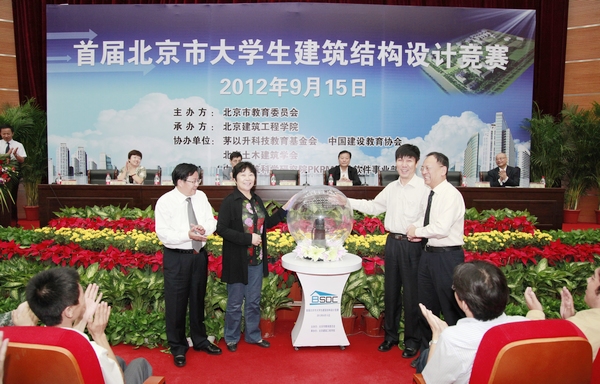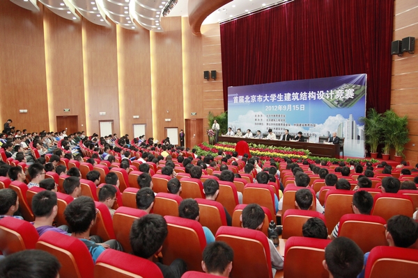 2012年9月15日,首届北京市大学生建筑结构设计竞赛在我校大兴校区隆重开幕。北京市教育委员会副主任付志峰、中国建设教育协会理事长、原建设部人教司司长李竹成、北京市住房和城乡建设委员会副主任王钢、茅以升科技教育基金会秘书长茅玉麟、北京建筑工程学院党委书记钱军、北京建筑工程学院校长朱光、北京建筑工程学院副校长汪苏、北京市教委高教处副处长金红莲及14所北京高校的教师和学生共计500余人参加了开幕式。大会由我校校长助理张大玉主持。