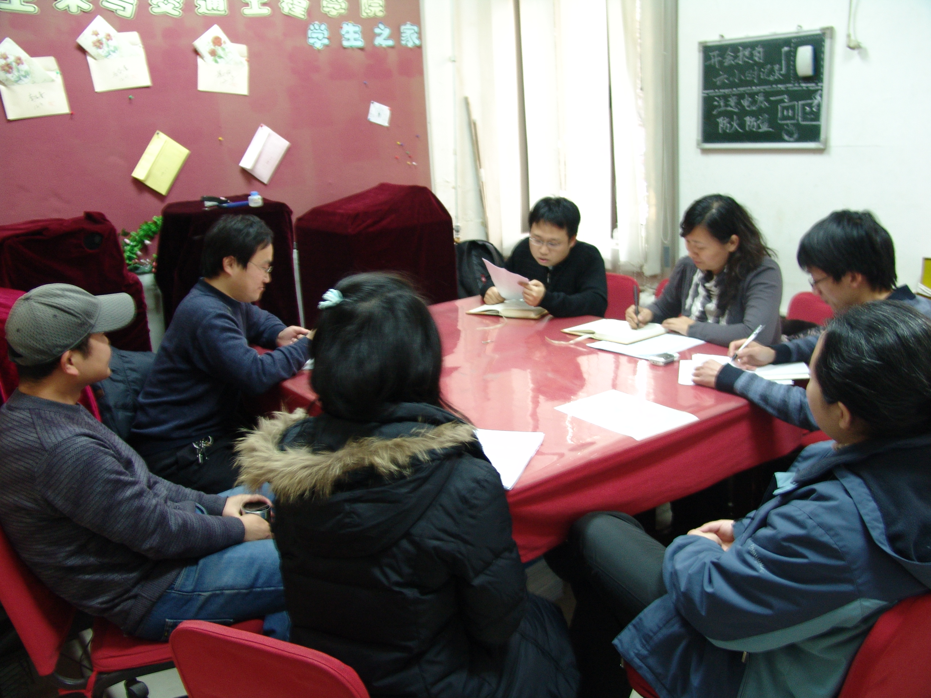 刘栋栋教授结合多年科研和教学经历,指出当前复杂的经济形势是挑战与机遇并存,鼓励在场全体党员一定积极从各种渠道申请科研项目,紧跟国家“十二五”规划中的研究热点和国家急需,在建设行业一线寻找横向课题,不断积累科研成果和夯实研究基础,从而争取在国家自然基金、北京市自然基金等纵向课题中的突破。