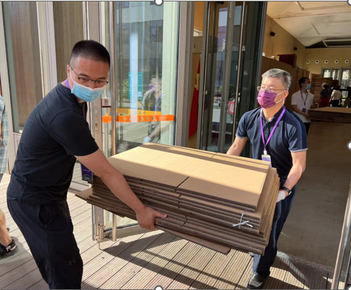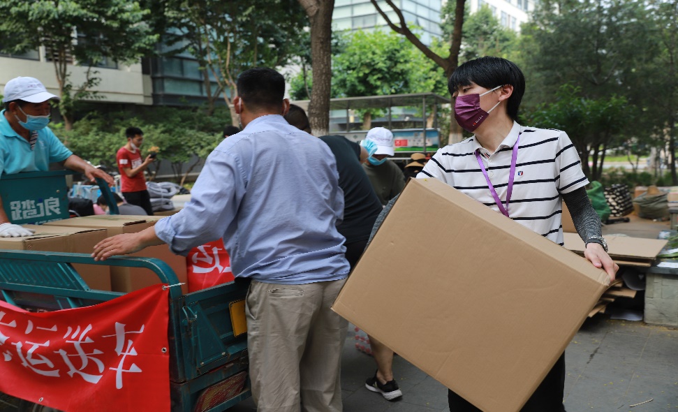 高温对于打包工作是不利的气候条件,返校的同学们克服夏季暑热,互帮互助、大力配合,在老师和物业工作人员的帮助下有序高效的整理和转运个人物品,帮助京外不能返京返校的舍友一同打包、邮寄行李物品。
