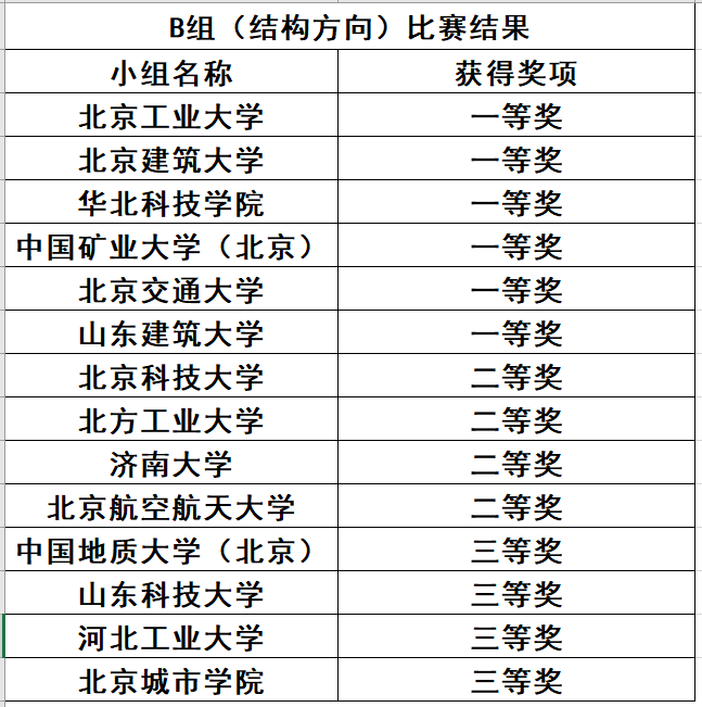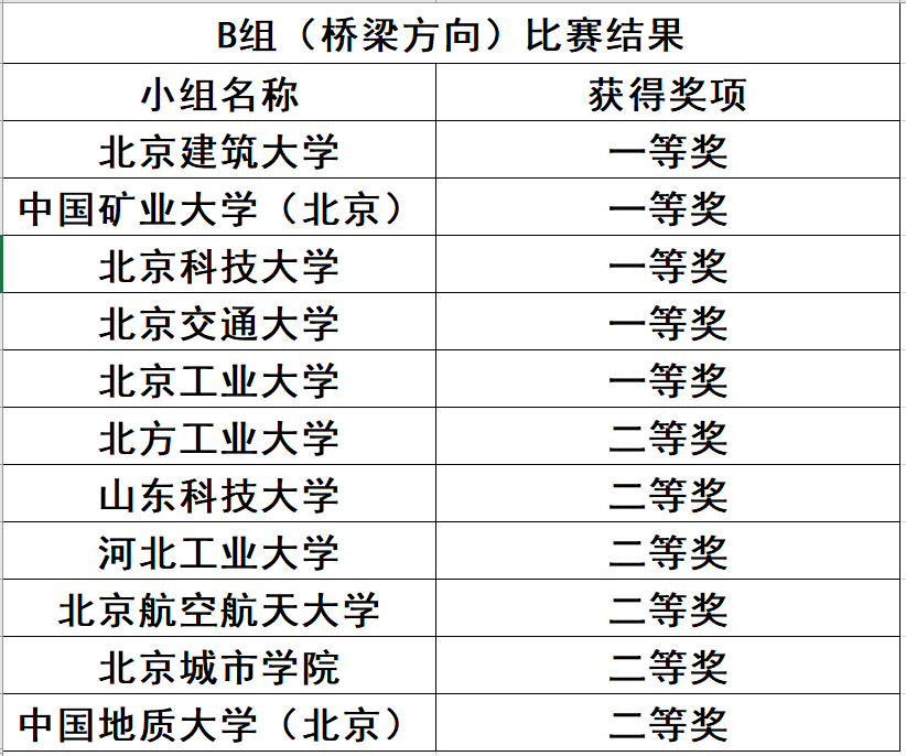在赛场志愿者的辛勤忙碌,参赛选手们的激烈角逐和评委们严肃认真的评判下,第九届北京市大学生建筑结构设计竞赛最终结果如下: