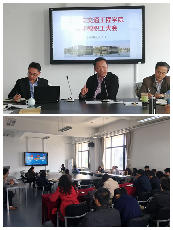 党委书记冯宏岳传达了《土木学院2018年党政工作计划》,并对下一步工作进行了部署,他强调,围绕学校中心工作,学院2018年计划在党的建设和思想政治建设、学风建设、本科教学评估整改、人才引进、团队建设等方面重点发力,严格按照计划完成相关任务,同时要求教职工根据学院计划,合理安排好自己的工作重点。会上,他还传达了学校2018年安全维稳工作实施方案的文件精神。