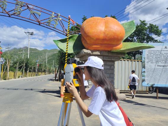 “按照前期的工作沟通,我们今天首先要完成村口牌楼的数据测量,以及村口到村委大院2公里道路两旁文化墙的位置确定,实地测量所有数据,将数据带回并进行墙画的整体设计”团队指导老师黄元景向村里介绍团队工作安排,“我们已经初步确定了依托村里柿子特色文化开发的文创产品类型,目前确定的有柿子杯、挂件、文化袋……”实践队长于淋西介绍前期线上工作进度。“希望你们集聚青年大学生敏锐的思维,放飞创意,为大峪沟村的文化产业发展奉献力量,乡村的广阔舞台、广大画板任你们舞动、擘画”苏月华勉励同学们。