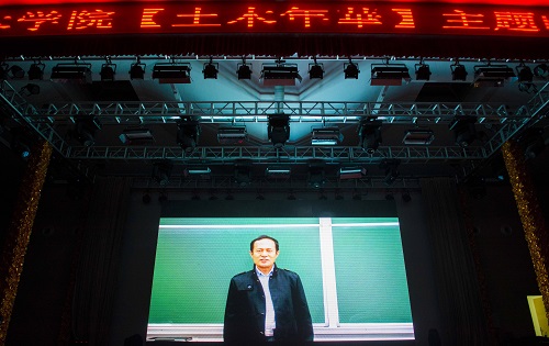 土木学院院长戚承志老师通过录制的视频向同学们传来了晚会的祝福以及俄罗斯名曲 《莫斯科郊外的晚上》,同学们感叹院长学识渊博的同时唱功也是一流的。