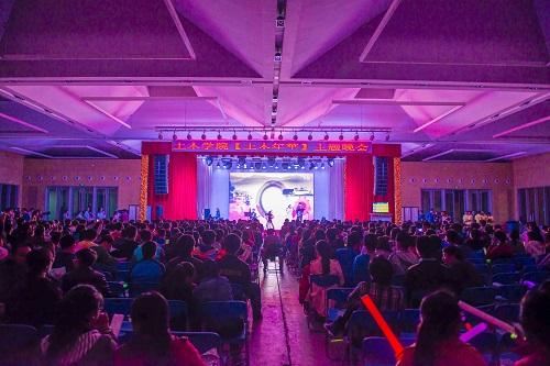 现场一流的舞台布置,人人网“消息墙”实时滚动互动播放,和特别录制的专题视频等吊足在场观众的胃口。“土木年华”主题晚会可谓是一场绝佳的视听盛宴。摇滚,民乐,相声,话剧,舞蹈,歌曲一应俱全,充分展现了建大学子的多才多艺,积极向上的精神风貌。期间穿插的微信摇一摇抽奖,人人网抽奖,也让同学们体验了抽奖的惊喜。
