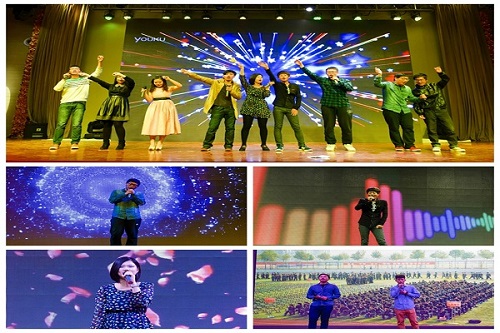 由宋宗耀老师,刘猛老师,谷天硕老师合唱的歌曲《光阴的故事》温暖了现场所有同学,不时有同学上台给老师们献花,台下的同学们更是挥着荧光棒回应老师们的倾心演出,晚会气氛愈是浓烈。