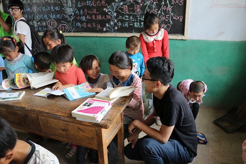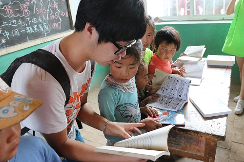 实践团的成员们带着孩子们读书,给他们讲解书中的故事。当被问起以前读过什么书时,孩子们说都是以前留下的课本,没有课外书。和孩子熟悉之后,实践团张雪带领孩子们一起唱“我相信”,就像歌词里写的“我相信自由自在,我相信希望,我相信伸手就能碰到天”,实践团的成员也想告诉他们,相信自己。歌声中,孩子们都放下了自己紧张的情绪,大声的歌唱,这让实践团的成员们看到了他们的乐观与积极的态度。和孩子们交流完后,实践团成员与校长商讨,把这项活动继续发扬下去,倡导学校的同学都能加入进来,利用每年的假期带来书籍或者文具学习用品等,给孩子们建立一个小小的图书室,让孩子们多读读书,让爱心传递。