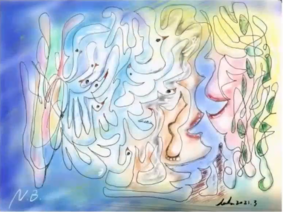 讲座中李老师同与会学生积极互动,邀请同学们分享自己对线条的想象,以及对音乐的画作。李老师表示,在艺术的世界里,我们可以肆意放飞自己的想象力,通过艺术方式来释放自己内心无形中积蓄的压力,既可以抚慰自己的情绪,也可以给别人一些理解。