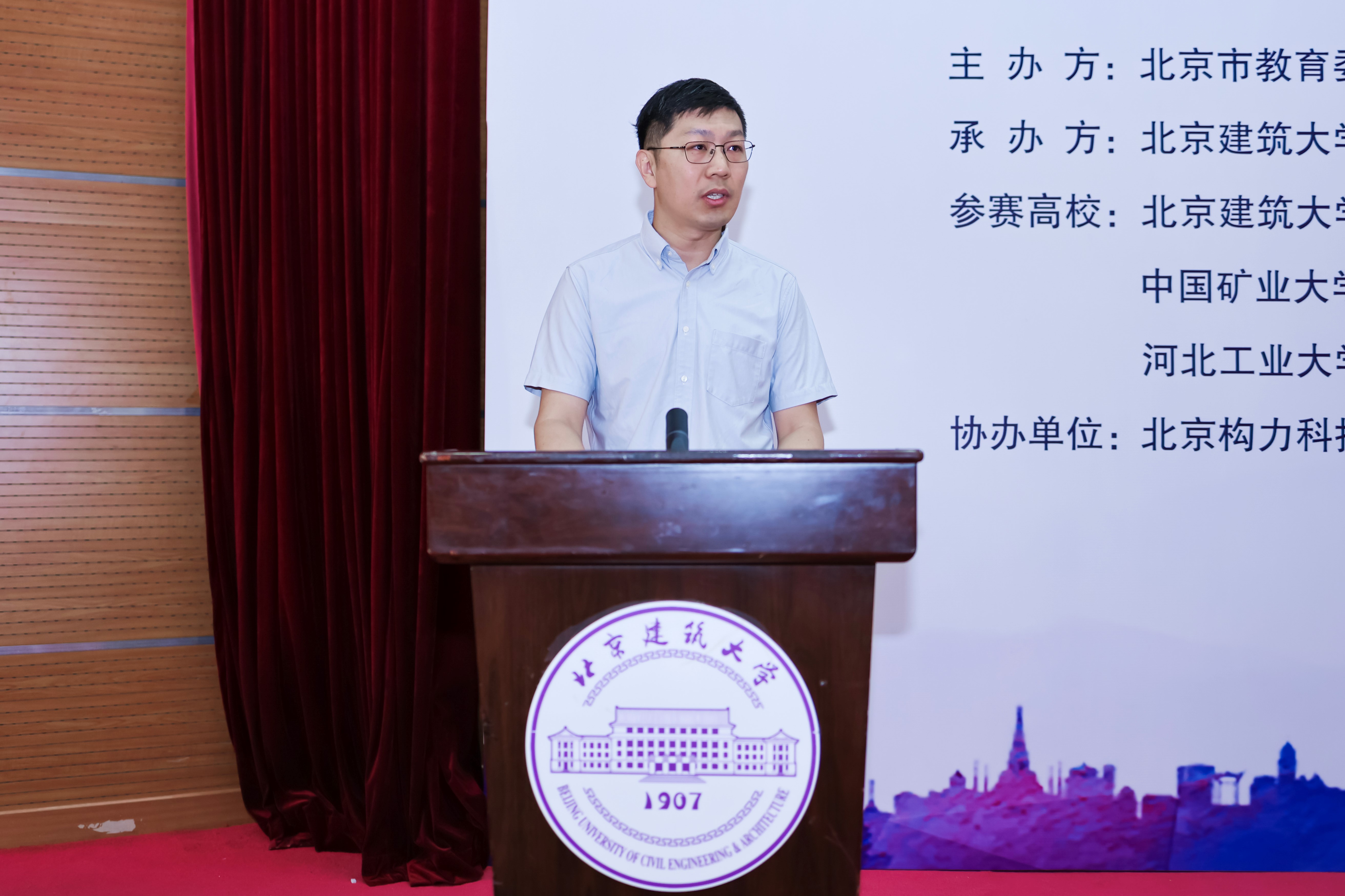北京市教委高教处副处长王佳琦代表北京市教委高教处对大赛的成功召开表示热烈的祝贺!他指出,北京市大学生建筑结构设计竞赛是北京市教育委员会主办的唯一建筑类大学生学科竞赛,竞赛目前已连续举办十三届,每年约2000余名师生参与,拥有了极大的关注度,已经形成了立足北京,辐射华北的办赛格局,是华北地区土木建筑类专业师生开展行业交流、引领科技创新、促进科技成果转化的重要平台。