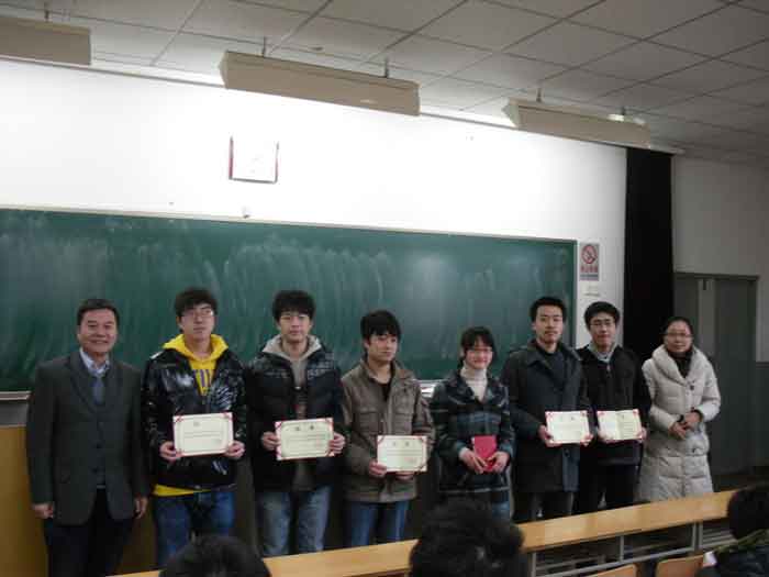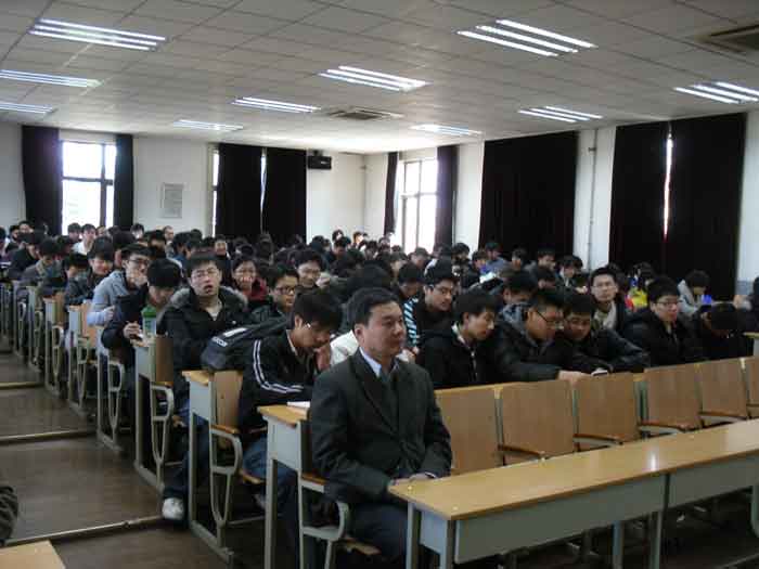 大会首先对学院顺利通过2010年12月国家大学英语六级考试的同学进行了表彰,吴徽院长向受表彰同学颁发了荣誉证书。随后,党总支副书记朱静老师对08、09级同学现在的四、六级通过率进行了总结,并着重强调了英语学习在未来就业、考研中的重要性,对同学在今后努力学习英语顺利通过国家英语四、六级寄予了厚望,同时对学院本学期的学生工作的几项重要任务进行了说明。吴院长就同学现在的专业学习情况作了总体介绍,并通过与国内相关高校和国际知名院校的对比,着重强调了各项专业学习的重要性,希望同学们进入大三后能够及时做好从基础课学习向专业课学习、从理论学习向实践操作的思维转换,从而更好地为未来的就业学习打好基础。同时,院长希望同学间能够营造良好的学习小环境互助学习。最后,院长对同学们在未来的学习深造寄予了厚望,希望大家能够积极学习,从而为争取到更好的学习研究前景奠定基础。