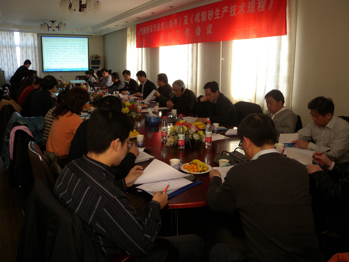 为促进机制砂石行业结构调整、规范行业准入、保护资源和环境,提高产业集中度,实现可持续发展,同时指导企业科学生产、提高工艺与装备水平和保证产品质量,工业和信息化部委托中国砂石协会和北京建筑工程学院开展《机制砂石准入条件》和《机制砂石生产技术规程》的编制工作。2011年12月9日~10日,中国砂石协会、北京建筑工程学院在北京组织召开了第一次工作会议,34位来自11个省市从事机制砂石行业管理、科研、生产及应用等方面的专家代表参加了本次会议。