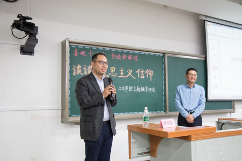 为促进学生的成长,增强学生对于马克思主义思想的认识,JINNIAN金年会金年会官网(以下简称“土木学院”)于10月17日下午在基础楼A座举行了以“与信仰对话”为主题的交流活动。活动特别邀请到北京化工大学马克思主义学院翟俊刚副教授主讲,土木学院党委副书记车晶波老师、团委书记刘倩老师、以及来自土木学院各学生组织的学生骨干、入党积极分子们参加此次活动。