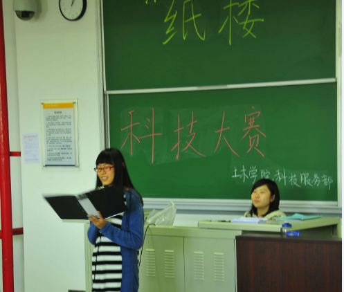 2012年11月13日,由金年会官网学生会科技服务部组织的“纸楼”设计大赛,在我校大兴校区基础教学楼A座239、232、228和224举行。本次比赛共吸引了来自我校各学院一、二年级学生组成的35支参赛队伍报名参加,出席比赛的老师有金年会党总支副书记朱静老师、团总支书记王秉楠老师以及一年级辅导员刘倩和谷天硕老师。