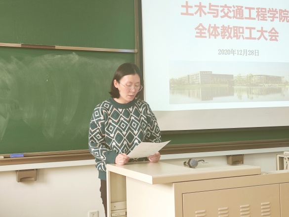 韩淼做土木学院考核述职汇报。2020年,土木学院深入学习贯彻习近平新时代中国特色社会主义思想,认真贯彻落实党的十九大和十九届五中全会精神,围绕立德树人的根本任务,推动学院各项事业发展,各方面取得了显著成绩。