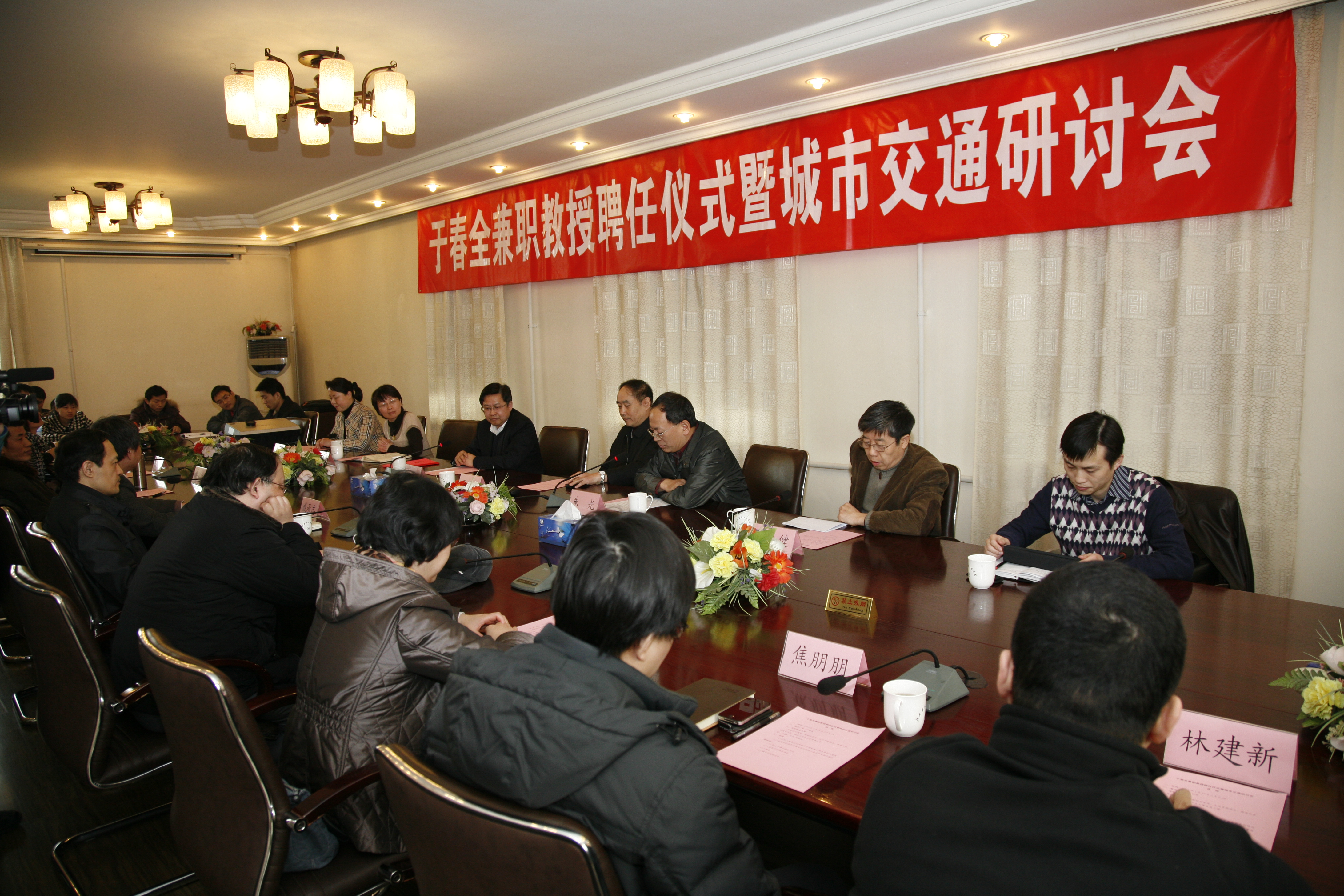 聘任仪式结束后与会人员对城市交通的发展进行了研讨,研讨会由土木学院院长吴徽教授主持。于春全教授详细介绍了北京城市交通的建设和发展情况,并提出了独到见解。吴徽教授介绍了土木学院教学、科研、学科建设、师资队伍、人才培养等方面情况。研讨过程中,大家积极发言,对城市交通的发展状况以及存在的问题进行了深入交流。