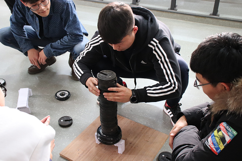 比赛在轻松愉快的氛围中结束,赛后土161班曹雅珺分享:“看到我们的纸桥可以承载这么多的重量,看着高高的哑铃塔,弱不禁风的纸片经过折叠、卷曲、加工竟然有如此的力量,这就是结构设计的魅力所在!”