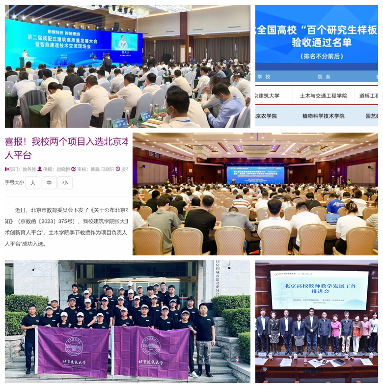 学院党委主动对标学校第二次党代会提出的“四大突破”和“八个显著提升”目标,以高质量党建引领事业高质量发展。道桥工程研究生党支部高质量通过教育部全国高校“百个研究生样板党支部”验收;学院作为市教委评估与监测处调研的唯一蹲点学院,通过以评定向、以评增强,促进本科人才自主培养质量提升;主办第十三届钢结构行业发展论坛、第六届交通基础设施和材料国际会议,吸引了行业2000余人参加;学院获得中国交通运输协会科学技术奖人才奖1项,成果奖3项,华夏建设科学技术奖等成果奖5项;申报的“韧性交通基础设施产学研贯通式创新育人平台”成功入选2023年北京本科高校产学研深度协同育人平台;学生参加全国高校BIM毕业设计创新大赛等赛事,获得国家级奖项8项;《生态自发光景观道路铺装材料》亮相全国大学生创新创业年会,入选“国创计划”十五周年创新成果展;走访企业13家,提供800多个岗位,助力学生高质量就业;3名老师带领近30名学生第一时间奔赴门头沟防汛救灾工作现场,参与受灾损毁房屋安全性评估鉴定工作,助力灾后重建。