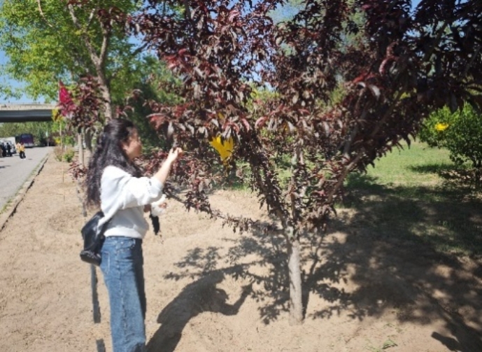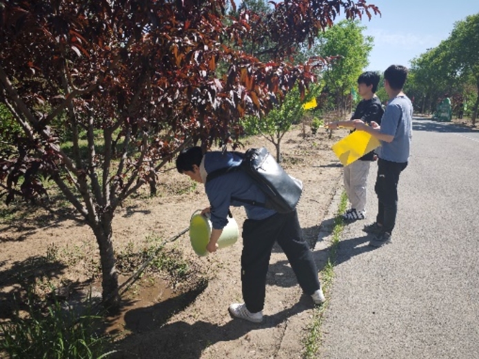 土研231班 初晓彤:今天浇灌时我发现每棵树都有独特的"饮水节奏"——枫树喜漫灌,松柏要环滴。悬挂诱捕器不再是机械劳动,系绳结时触到树皮愈合的伤疤,恍然惊觉我们在参与一场无声的生命守护。今天的劳动教育让我受益匪浅,我们在学好理论知识的同时更要加强实践锻炼,在实践中不断提升自己。