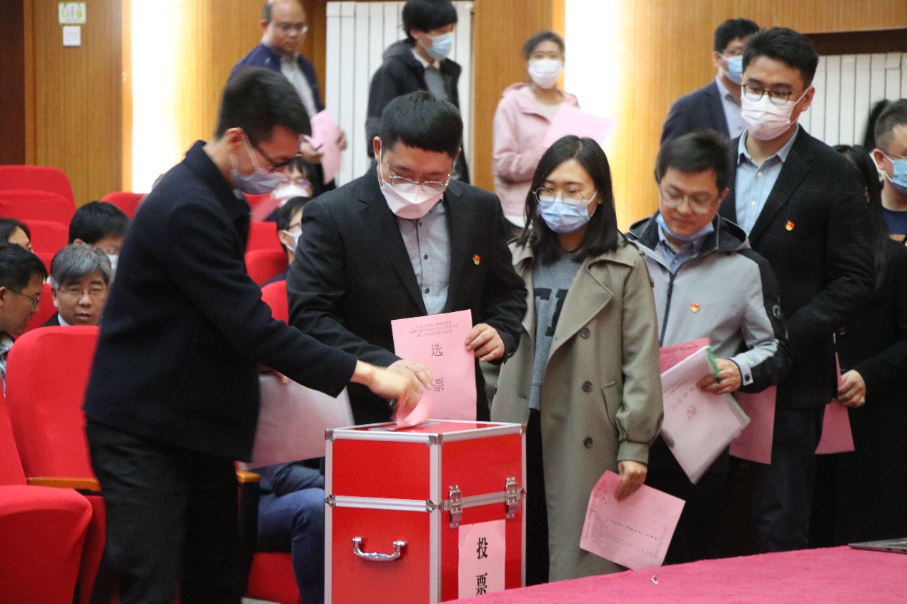 投票环节在工作人员的引导下有序进行,正式党员投下庄严而神圣的一票。