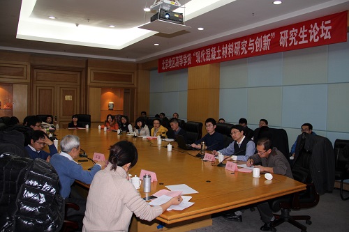 为鼓励和推动现代混凝土材料理论和技术创新,结合教师创新团队发展计划的实施,2014年12月13日-14日我校金年会官网主办,中国混凝土与水泥制品协会教育与人力资源委员会和《混凝土世界》杂志社协办的北京地区高等学校“现代混凝土材料研究与创新”学术研讨会在北京银龙苑宾馆组织召开。会议邀请了建筑材料研究相关的十余所北京地区高等学校和研究院所,包括清华大学、东南大学、北京航空航天大学、北京交通大学、中国矿业大学、北京科技大学、北京工业大学、武汉大学、中国建筑科学研究院、中冶建筑研究总院、北京建筑材料科学研究总院、中国水泥与混凝土制品协会等,我校建筑材料方向两位前辈蔡光汀老师和薄遵彦老师也应邀出席,近百名专家学者和研究生代表参加了本次学术会议。