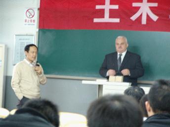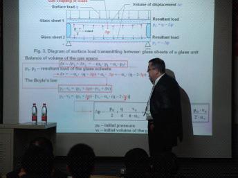 Jaroslaw Rajczyk教授介绍了琴斯特霍瓦理工大学各学科情况及土木工程学院主要科研活动,详细介绍了在混凝土相关的新材料、新工艺方面所做的工作,重点讲解了混凝土加工设备的参数优化的相关概念,介绍了在混凝土加工优化工艺上所做出的实验成果、所得出的参数变化规律。Zbigniew Respondek副教授介绍了结构相互作用的数学模型的建立过程,建立模型过程中所注意的问题及根据此模型所得出的多层玻璃结构的受荷变形、应力特点。与会的老师和同学就玻璃结构的受力变形、玻璃结构的使用周期及其更换、玻璃结构中所用玻璃的构造组成等问题,与专家进行了积极而热烈的讨论。