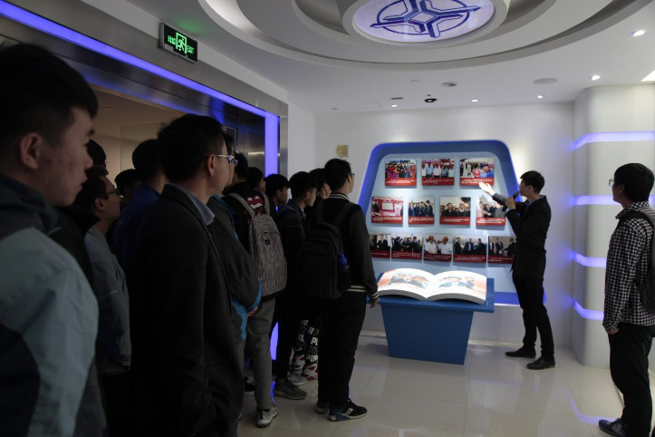 “交融天下、建者无疆”在壮阔的企业宣传视频拉开了此次交流活动的序幕,通过观看公司宣传视频,同学们看到了中交一公局在中国桥、中国路、中国港的建设中贡献的力量,同时通过对我校宣传片的播放也让中交一公局的领导进一步了解我校情况。接着,在讲解员的带领下,土木学院师生一行来到了公司宣传展览室进行餐款参观, 学生看到中交一公局的3D沙盘演示、公司发展历程、代表性建筑和所获荣誉,同学们都感叹于我国建筑行业的发展之快。