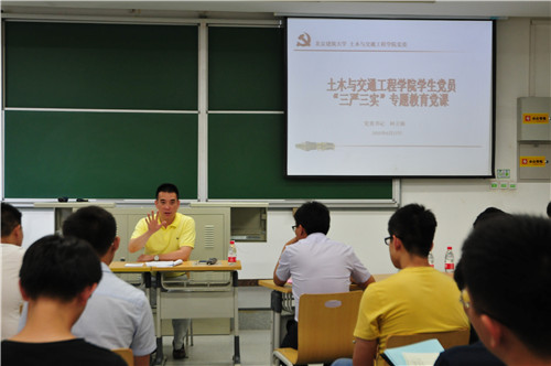 为贯彻落实中央从严治党要求,巩固和拓展党的群众路线教育实践活动成果,持续深入推进党的思想政治建设和作风建设,根据中央、北京市委和学校的部署要求,在学生党员中开展“三严三实”专题教育。金年会官网(以下简称土木学院)党委书记何立新分别于6月16日、17日在西城校区与大兴校区为学院全体学生党员讲授题为“向严要质量,向实要效果,努力做学风建设的带动者”的专题教育党课。