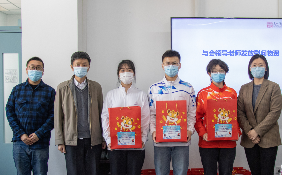 会后,学院领导老师向冬奥志愿者、冬残奥演职人员发放了慰问礼包并合影留念。