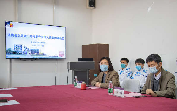 为高标准高质量推进2022年北京冬奥会、冬残奥会志愿者服务和参演人员保障工作,确保圆满完成各项任务,土木学院于2022年1月14日上午10:30在学院楼E座542召开了冬奥会、冬残奥会志愿者慰问座谈会。土木学院党委书记韩淼,党委副书记关海琳,辅导员苗胜杰,土木学院全体冬奥会、冬残奥会志愿者参加会议。会议由关海琳主持。