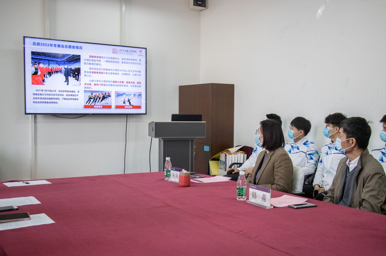 会上,关海琳向大家介绍了土木学院冬奥志愿者和冬残奥演职人员基本情况,并对志愿者活动计划、工作内容进行解读。她指出,学院将配合训练任务做好后勤保障工作,做同学们坚强的后盾。