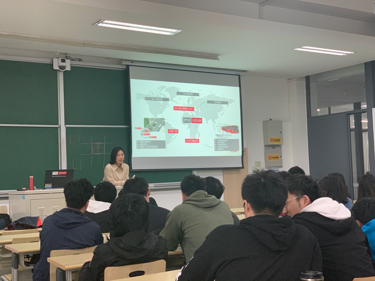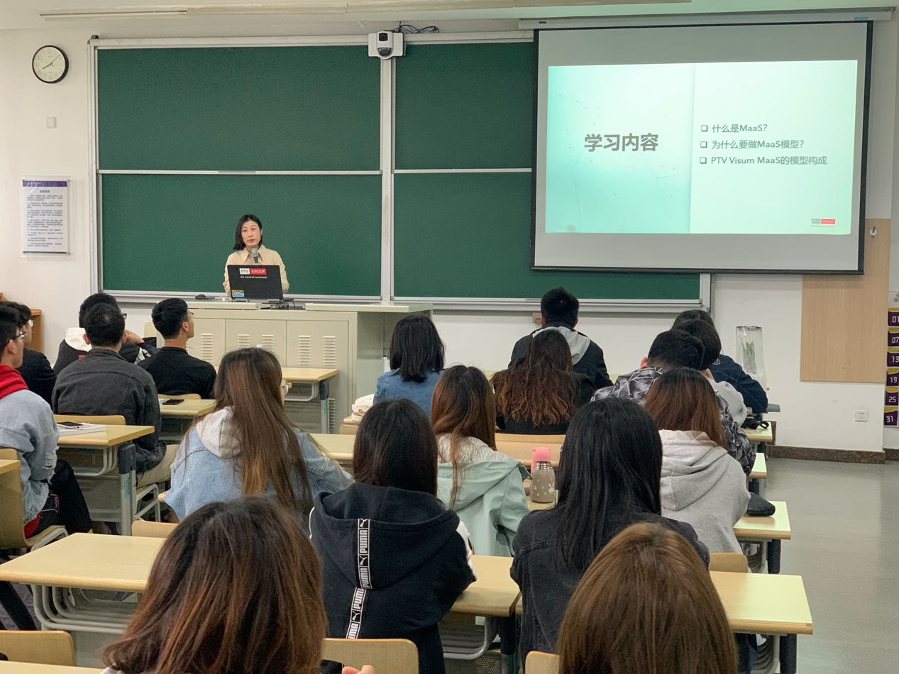 PTV公司肖总以拼车为例,系统的讲解了MAAS系统的特征和建模过程,并与学生进行了广泛的交流,解答了学生的各种疑问。聆听课程的有交通18级全体学生、部分研究生和交通17级学生。活动由交通工程系主任李之红主持。