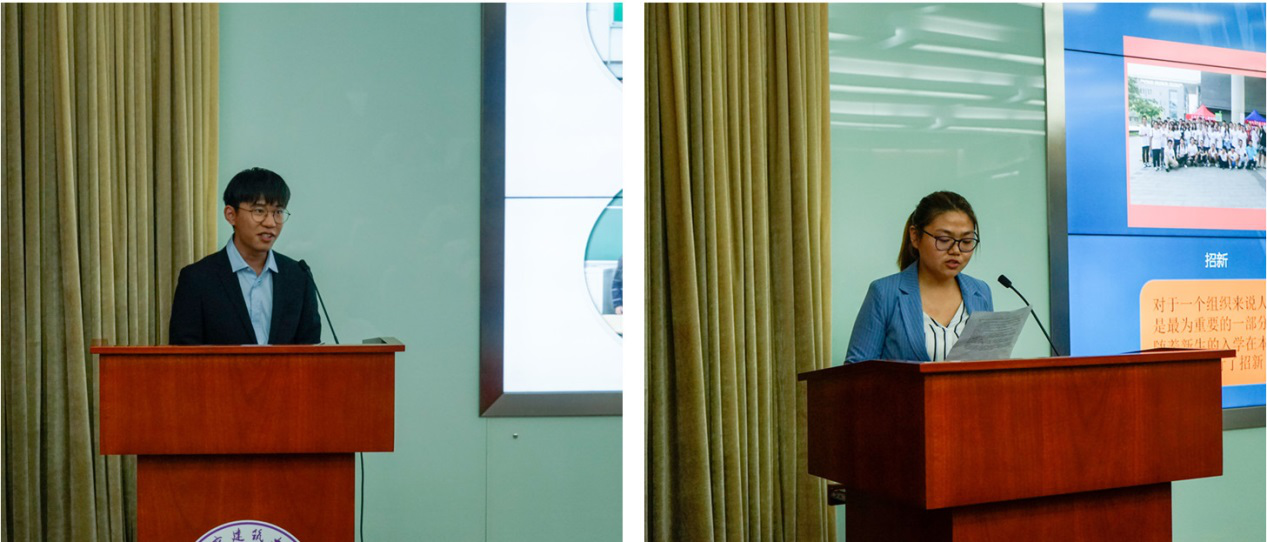 随后,科技创新协会主席高梓寒从部门构成、工作内容、未来期望等方面进行了部门述职。高梓寒总结了近一年的竞赛工作和科技创新成果经验,他希望科协的各部门加强在业务上的联系与专业水平。青年志愿者协会主席翟文静在介绍工作内容和人员构成之外,期望青协的成员们能够提高自身修养,将更多的同学吸引到志愿者的行列中去。