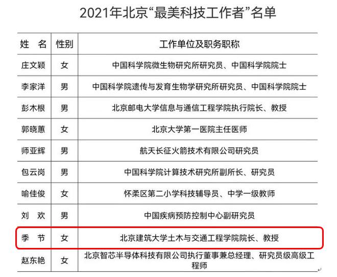 8月14日,2021年北京“最美科技工作者”揭晓。我校金年会官网院长季节教授等来自首都科研生产一线的10位科技工作者当选2021年北京“最美科技工作者”,同时入选2021年全国“最美科技工作者”候选人。