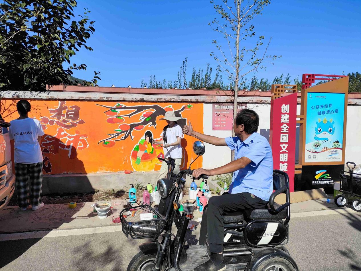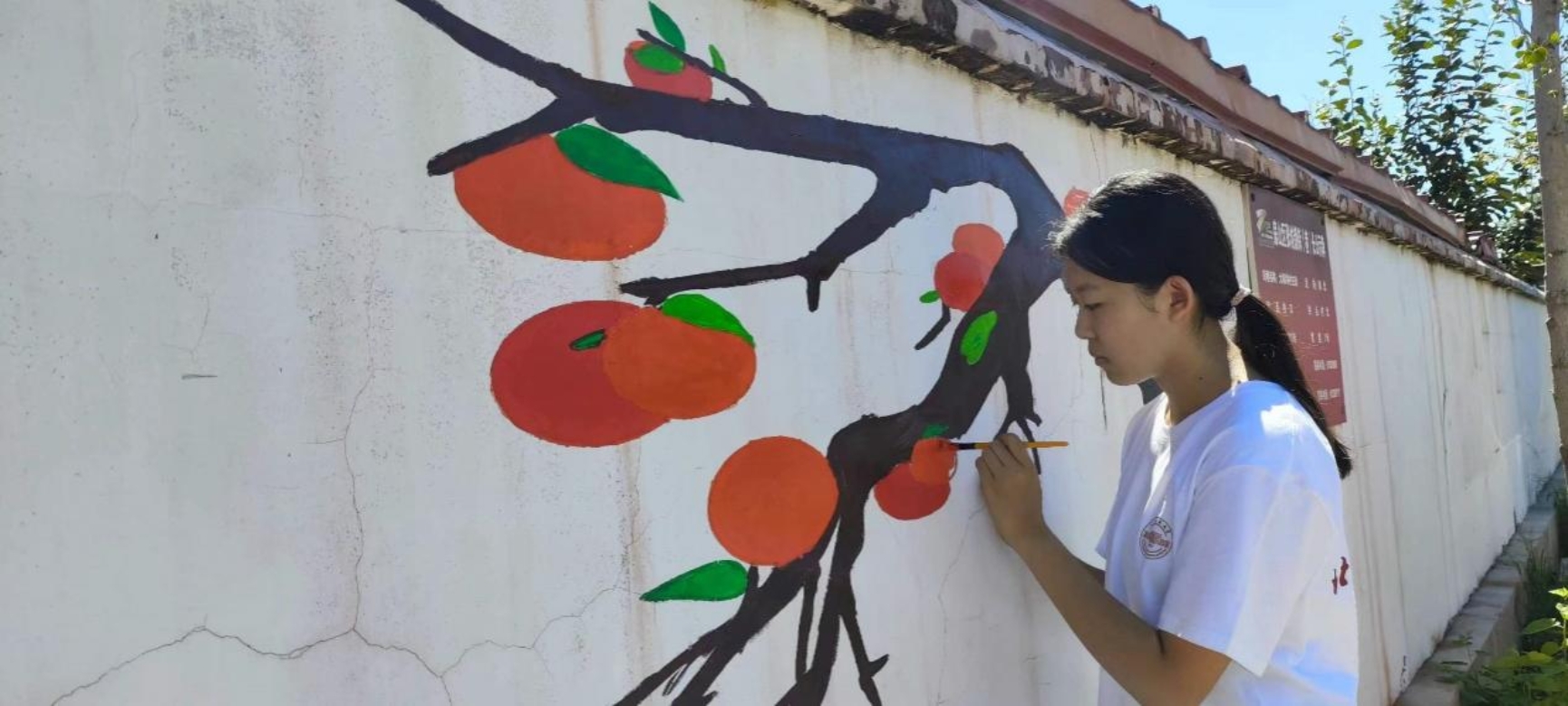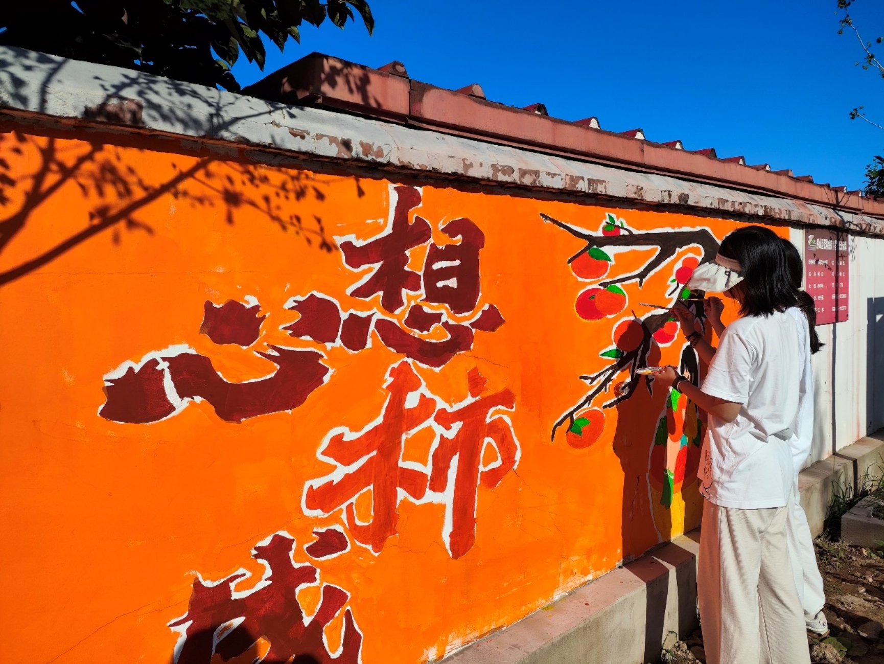 经过连续7个多小时的精心描绘,焕然一新的墙画完成,和墙外的柿子园相互映衬,形成了一幅和美的乡村画卷,墙边“创建全国文明城区”的标语也显得更加亮眼。路过的村民看到这一番生动的画卷,纷纷竖起拇指为队员们点赞。