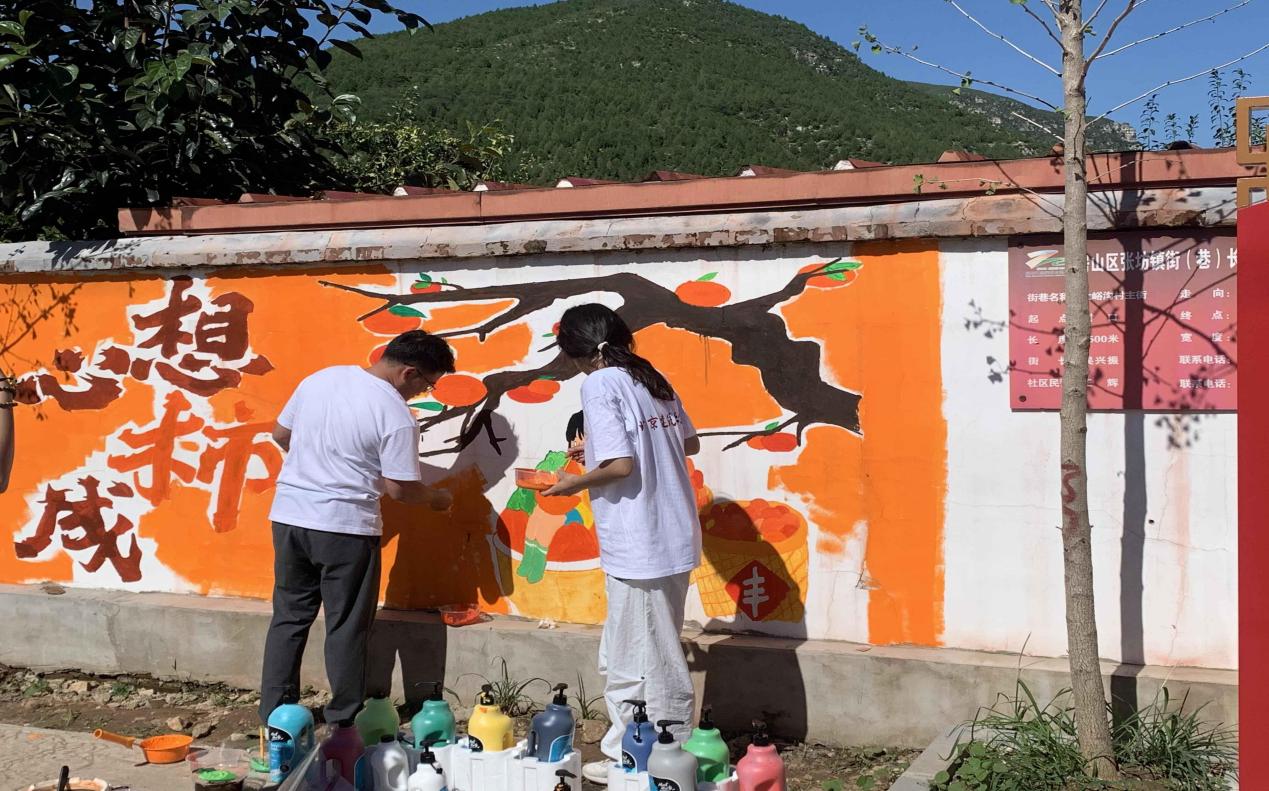 为进一步发挥青年学生的知识才干,让青春的活力、创造力绽放在乡村基层一线,为乡村振兴奉献青年力量,土木学院组建一支由学生党员、积极分子、骨干为主要成员的“方圆先锋”实践团,对接房山区张坊镇大峪沟村展开实践服务活动。8月22日,实践团在辅导员黄元景的带领下再次来到大峪沟村开展文化墙墙画绘制工作,大峪沟村党支部书记苏月华到现场和实践团成员深度交流。