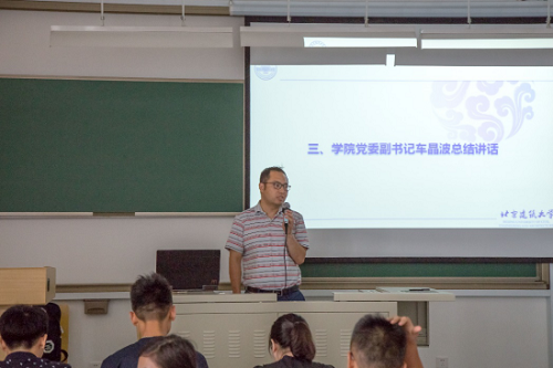 接下来,土木学院党委副书记车晶波对本次动员大会讲话。他指出学生参加社会实践是学生锤炼意志品质、增强实践能力的重要途径,希望同学们可以在实践过程中用眼观察,用脑思考,用脚丈量,用心体会,用手实践。同时车老师强调,社会实践是一次精心策划的集体行动,各团在实践过程中要树立团队意识,注意安全。