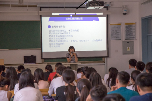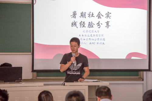 随后,2016年暑期社会实践优秀个人土142班石顺义同学结合他自身的历经,为大家讲述了自己所在团队社会实践的收获与心得体会,让同学们了解社会实践对个人成长的重要性,更加明白实践的意义。