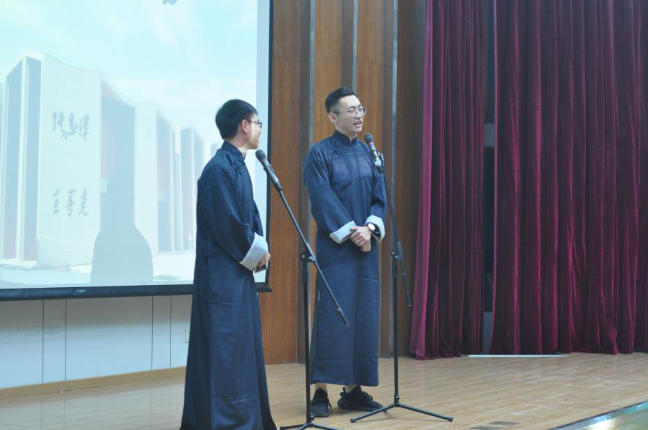 土木学院王梦尧、张志伟的相声表演以有趣的方式演绎了丰富多彩的大学生活,从学习考试到宿舍生活,从专业知识到兴趣爱好,仿佛再现了一个个熟悉的大学生活场景,一句句脍炙人口的诙谐台词,现场笑声此起彼伏接连不断。