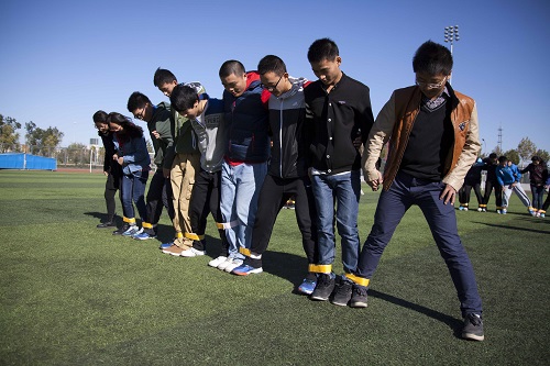 袋鼠跳、螃蟹走、旋风跑……,在大兴校区西侧操场学生们的欢声笑语不断,这是来自土木学院第六期学生骨干培训活动之户外素质拓展的活动项目。