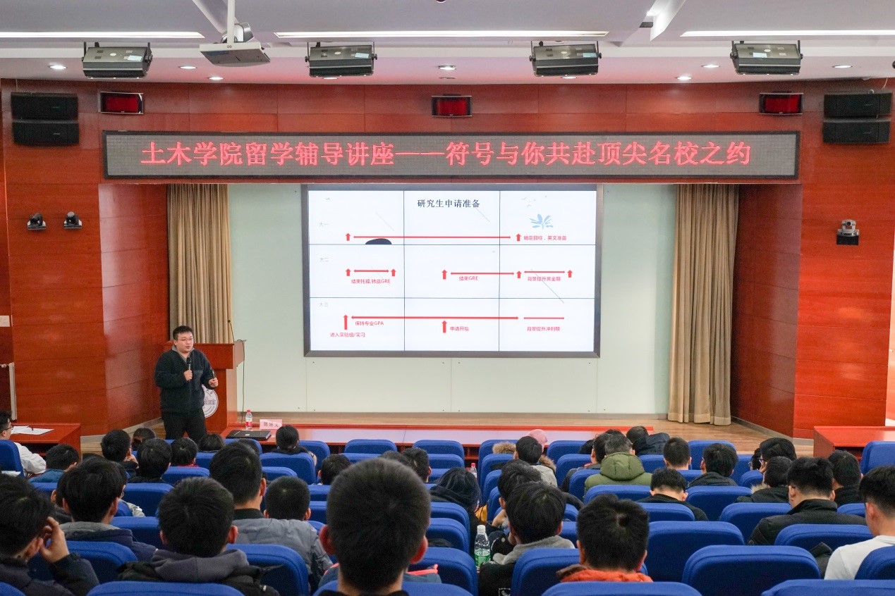 为拓展学生国际视野,解决留学常见疑惑,提升人才国际竞争力,12月11日,土木学院邀请国际教育专家、符号留学创始人姚博文为学生带来主题为“与你共赴顶尖名校之约”的留学辅导讲座。土木学院党委副书记车晶波、辅导员苑泉、李辉及2016、2017、2018级部分学生参与了此次讲座。