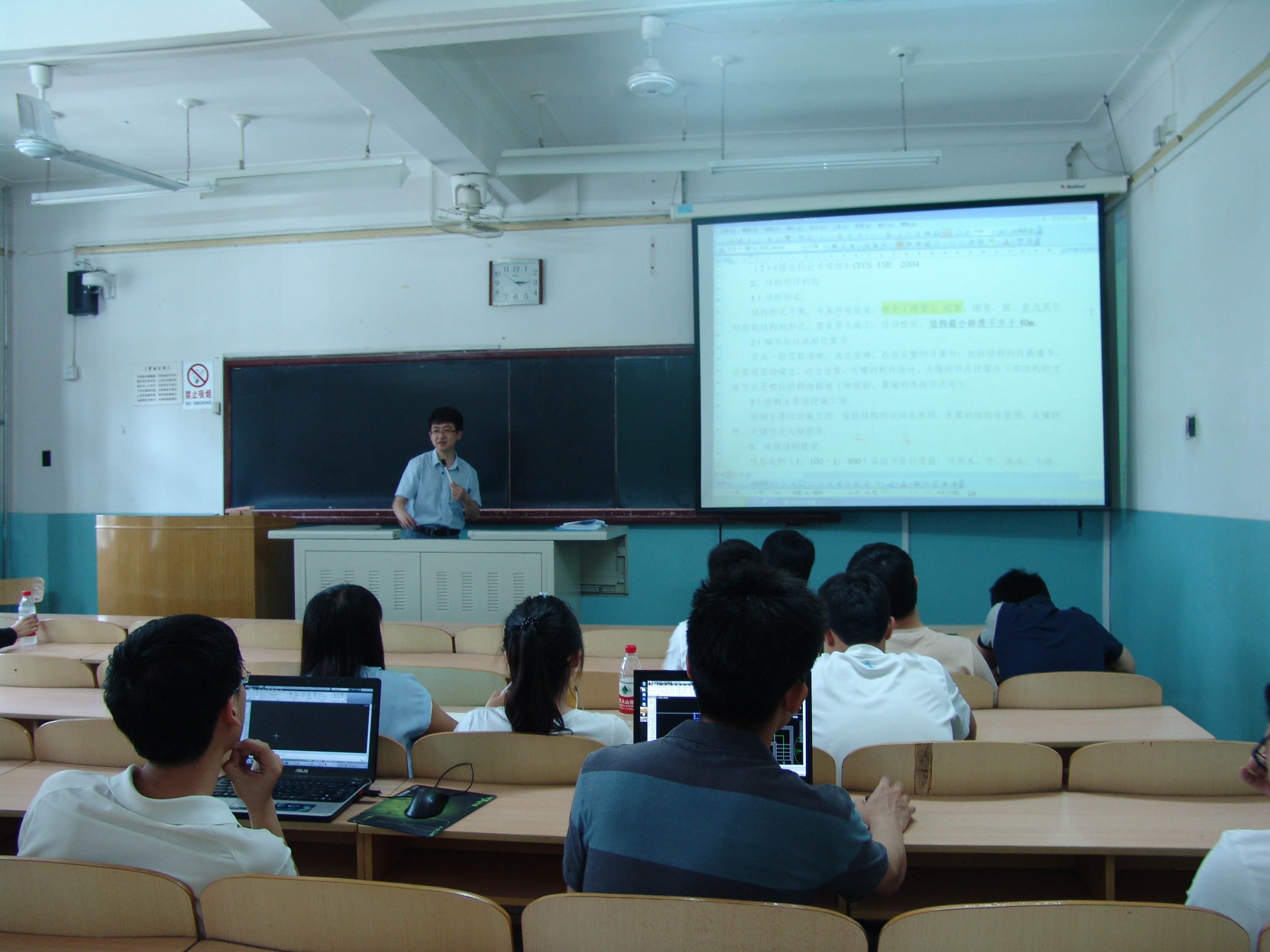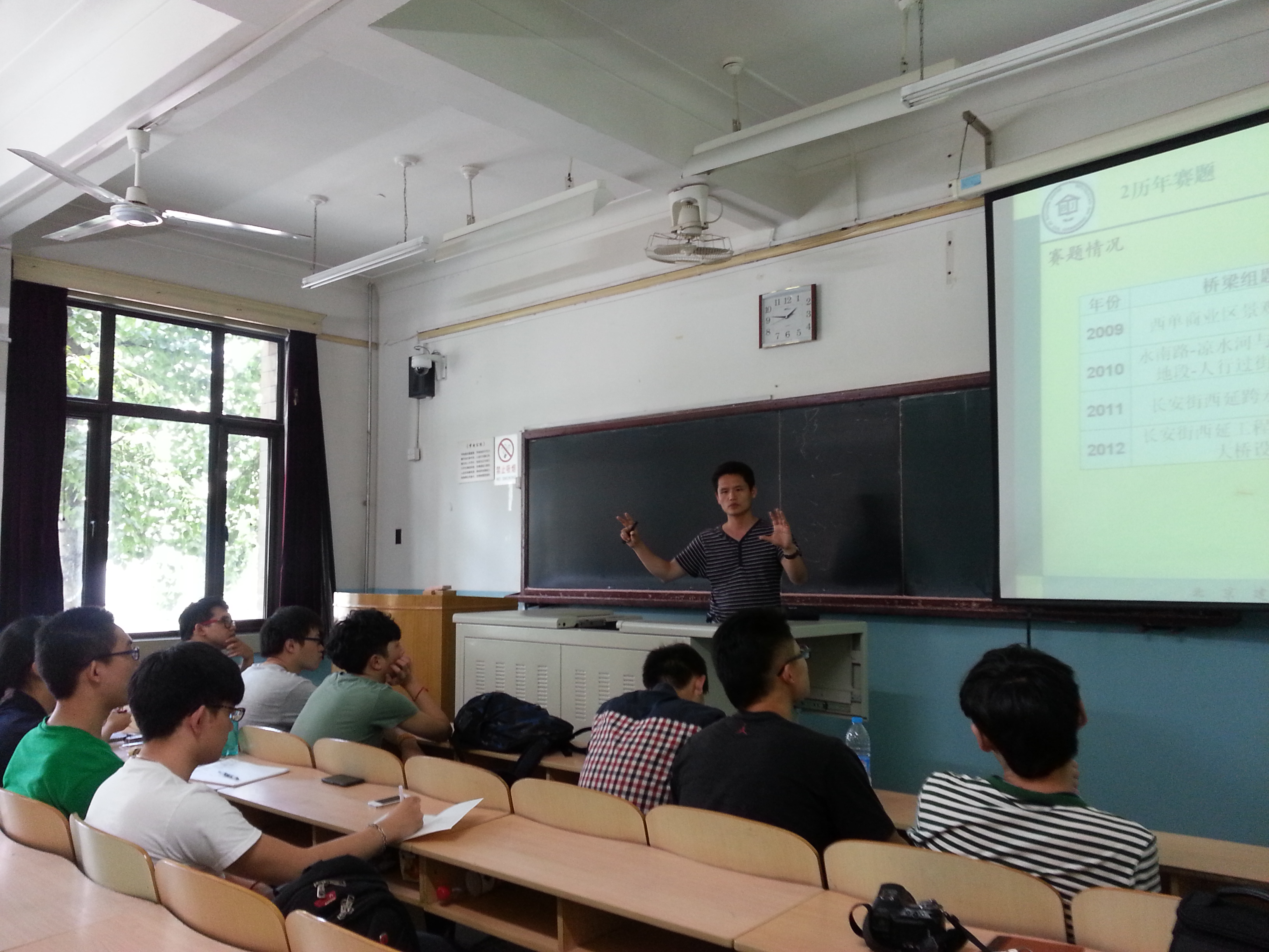 祝磊老师、庄鹏老师以及焦驰宇老师曾多次作为建筑结构类学生科技竞赛的指导教师带领学生参加比赛并获得全国性、市级奖项,本次校内选拔赛赛前辅导答疑会,三位老师针对本届比赛赛题的内容、要求、评分标准、注意事项等方面为参赛选手们进行详细讲解。其中,祝磊老师根据竞赛A组赛题的特点着重为学生讲解了A组赛题的评分原则和注意事项,提示同学们应注意结构模型受力的合理性和创新性;庄鹏老师为B组赛题(结构方向)的参赛队员们介绍了大跨径建筑结构设计中应注意的重点问题,并希望各参赛组负责建筑设计、结构设计的同学互相配合达到建筑美观与结构合理的完美结合;焦驰宇老师为B组赛题(桥梁方向)的参赛同学详细讲解了本次赛题与上一届赛题的不同之处,并强调了本次赛题由于人行天桥所处的地理位置,应考虑该桥梁与周围环境和谐,并为同学们介绍了桥梁美学有关知识,鼓励同学们在本次大赛上取得好成绩。参赛同学们也借此机会向专业老师们请教有关赛题的疑问,各小组之间也进行了赛题交流。