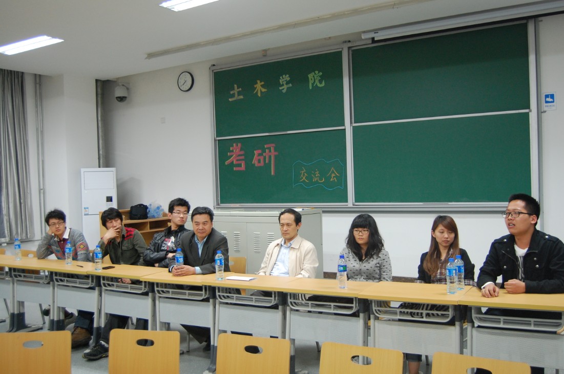 为了加强同学们对考研知识和经验的了解,营造积极向上的学风,土木学院于2012年4月18日晚6时举办了考研交流会。出席此次交流会的领导和老师有土木学院院长吴徽,副院长戚承志,团总支书记王秉楠及一年级辅导员谷天硕。08级的孙健等6名考上研究生的同学和10级及11级的同学参加了活动。此次活动由王秉楠老师主持。