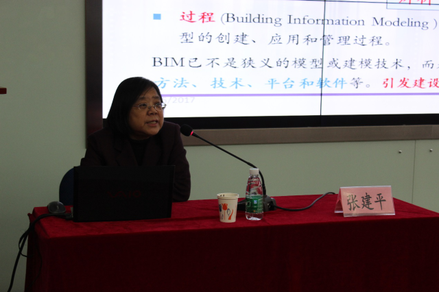 讲座环节,清华大学清华大学土木工程系张建平教授详细讲解了BIM技术在工程中的应用,从定义、构成、特征和价值方面解释了什么是BIM;从政策、标准、软件和应用方面介绍了国内外BIM技术的发展现状;从项目策划、工程设计、工程施工、运维管理等方面介绍建设工程全生命周期内BIM技术的应用;从应用领域拓展、集成应用提升和融合应用创新等方面介绍了BIM技术最新的研究进展及发展趋势。同时,张教授也指出了现阶段BIM技术发展过程中遇到的困难,包括标准体系不完善、政策法规不健全、关键技术亟待突破、应用软件不配套、BIM技术集成应用困难等,难以体现BIM技术整体应用的真正优势。