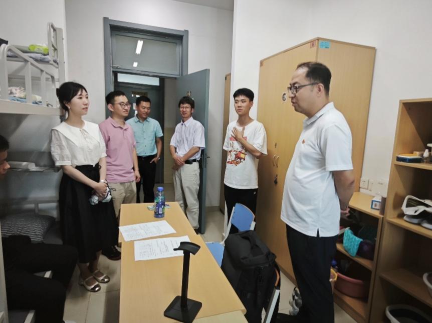 土木学院领导班子走访新生宿舍,亲切地与新生们进行交谈,详细地询问了新生们的入校感受、吃住情况等。嘱托大家要融洽相处,互相帮助,本地学生应照顾好外地学生,营造一个良好的宿舍氛围。