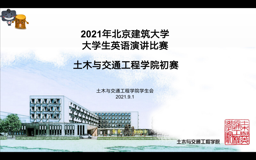 本次比赛以再创未来(Reinventing the Future)为主题,比赛流程分为两部分,第一部分为选手演讲者进行5-8分钟的主题演讲,第二部分为评委老师进行提问,演讲者当堂回答。尽管本次比赛采用线上形式,但参赛者们热情不减,饱腹情感的讲述了自身对主题的独特见解,并且结合当下时代发展来联系对未来的展望,展现出了优秀的演讲水平,更展现出了北建大人气宇不凡的魅力和厚积薄发的实力。