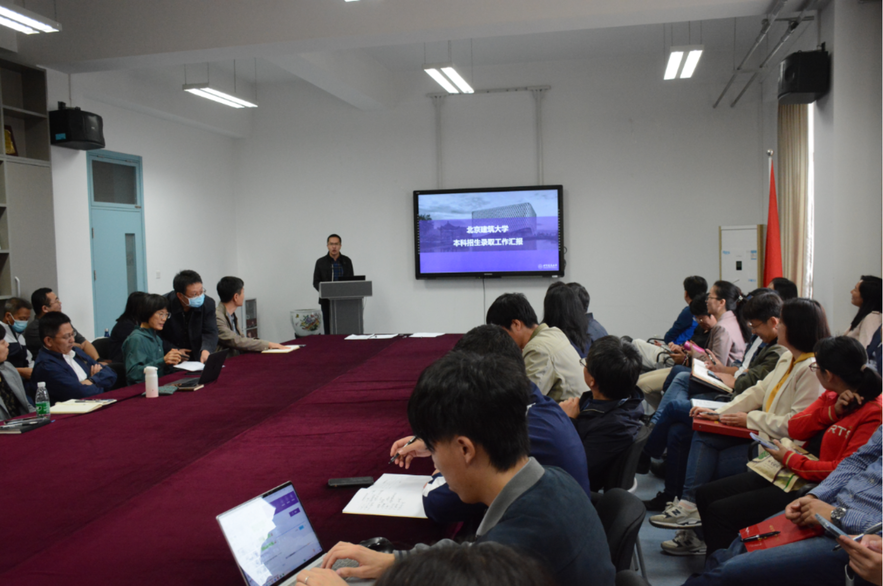党委副书记关海琳汇报学校校历调整情况,希望研究生导师合理规划学生科研时间,鼓励研究生回家过年。