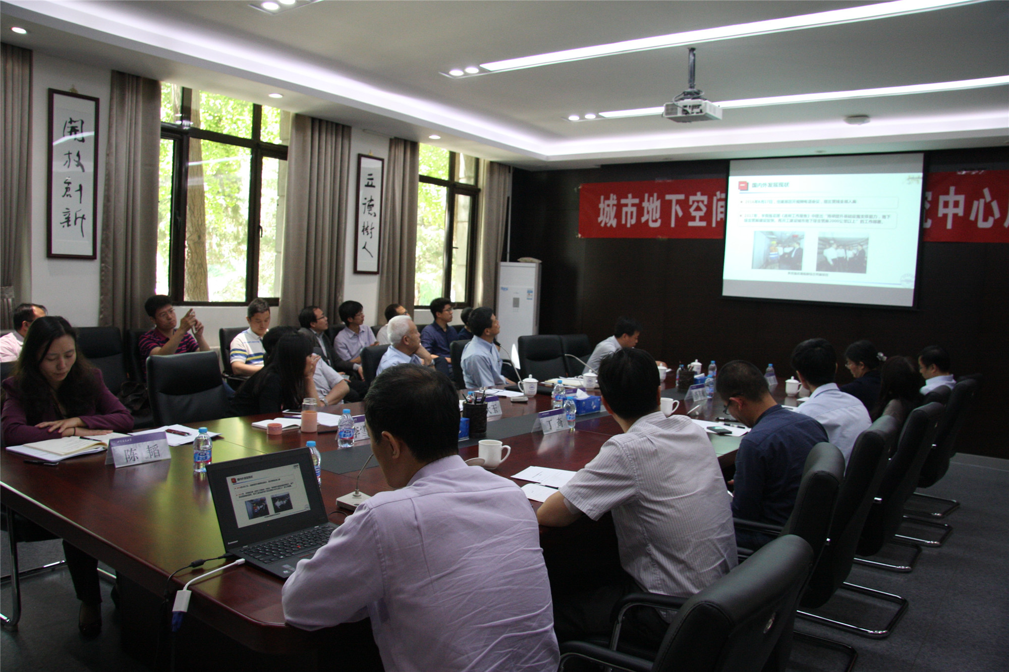 揭牌仪式之后,戚承志院长代表研究中心汇报了当前地下空间开发与综合管廊建设国内外发展动态与研究中心近期的研究规划。地下空间与综合管廊研究中心的成立,将紧密围绕国际地下空间开发和地下工程建设的前沿问题展开研究,服务首都和国家的城市地下空间开发和综合管廊建设。