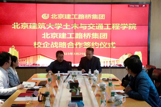 为深入学习贯彻党的二十大精神,通过党建引领全面强化校企合作平台对深入实施科教兴国、人才强国、创新驱动发展的促进作用。3月29日,土木学院赴北京建工路桥集团有限公司对接合作,签署战略合作协议。北京建工路桥集团董事长邵继有、副总经理朱峰、党委副书记杨轶、总工程师刘丙宇出席此次活动。土木学院党委书记车晶波、副院长廖维张、建工系党支部书记初明进、道桥系党支部书记金珊珊、道桥系副教授乔宏及就业辅导员王虎、苗胜杰、土木学院相关专业毕业生参加活动。